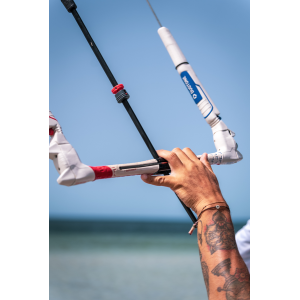 Le système de connexion entre l'anneau et le suicide leash permet de ride en toute sécurité ou configurer facilement le Suicide pour une utilisation déhooké Il existe également une barre Click en taille moyenne avec des rallonges de 12 m + 12 m ; cette configuration est parfaite pour les écoles de kitesurf.