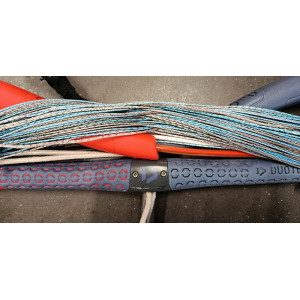 Depuis 2 ans elle est équipée des lignes Robline FLITE99 plus solides avec un diamètre limitant la trainée, plus de résistance et encore moins d'élasticité votre kite aura encore plus de répondant.