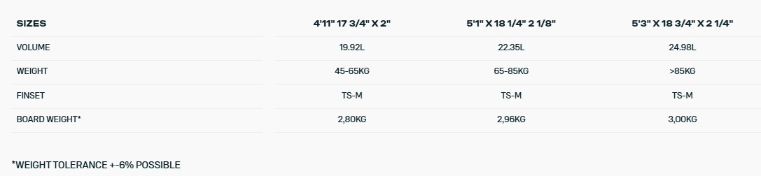 - Planche performante pour petites vagues à moyennes / strapless freestyle.