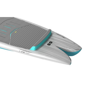 Le boîtier de foil avancé permet un équilibre optimal entre les appuis avant et arrière, tandis que la carène V-bottom concave réduit les touchettes et adoucit les touchdowns. Le pont avant abaissé assure une meilleure répartition des pressions pour un contrôle constant, même dans des conditions instables.
